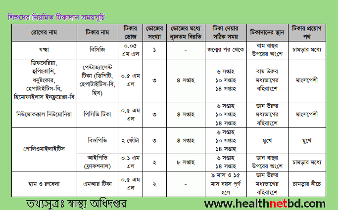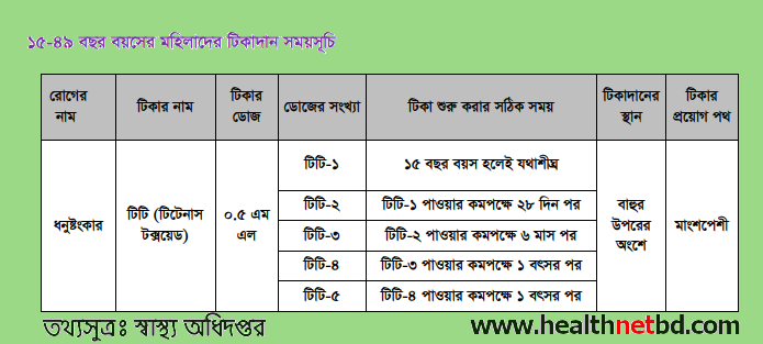 শিশুদের টিকাদান শিডিউল(সরকারী/ইপিআই) (1209 downloads )৩। প্রাপ্তবয়স্ক মহিলাদের টিটেনাসের টিকাদানের শিডিউল